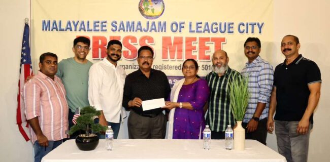 ലീഗ് സിറ്റി, ടെക്സാസ്: ഭവനരഹിത4ക്ക് സൗജന്യ ഭവനനിര്മ്മാണ പദ്ധതിയുടെ ആദ്യ ഗഡു ഓര്മ്മ വില്ലേജിനു കൈമാറി.